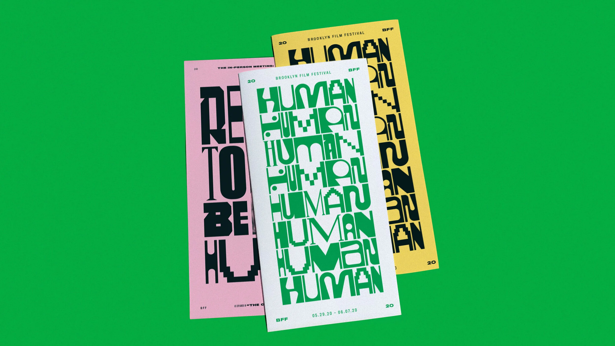 In order to create a type system for the 2020 festival, we took letterforms from each of the film’s titles and combined them to make a unique, modular approach to the festival’s branding.