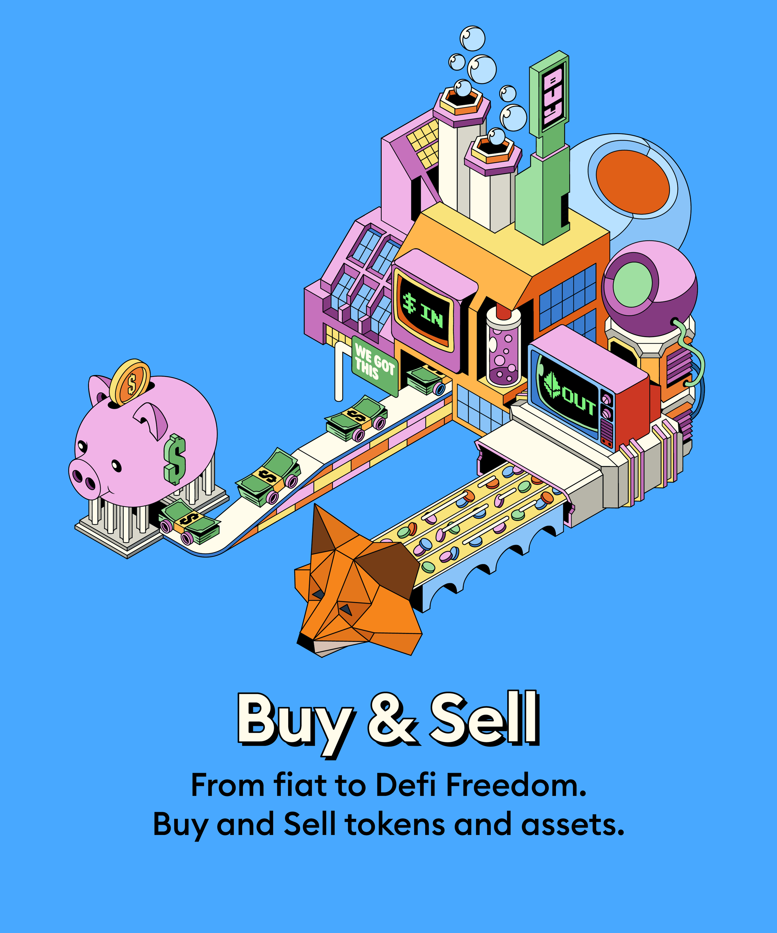 MetaMask partnered with illustrator Dave Arcade to bring this world to life.